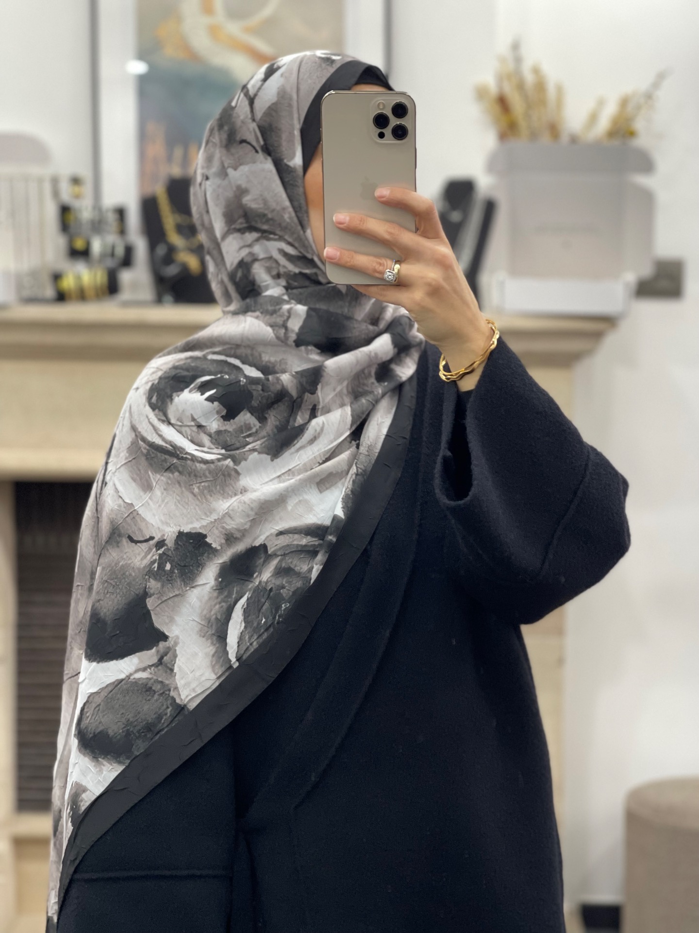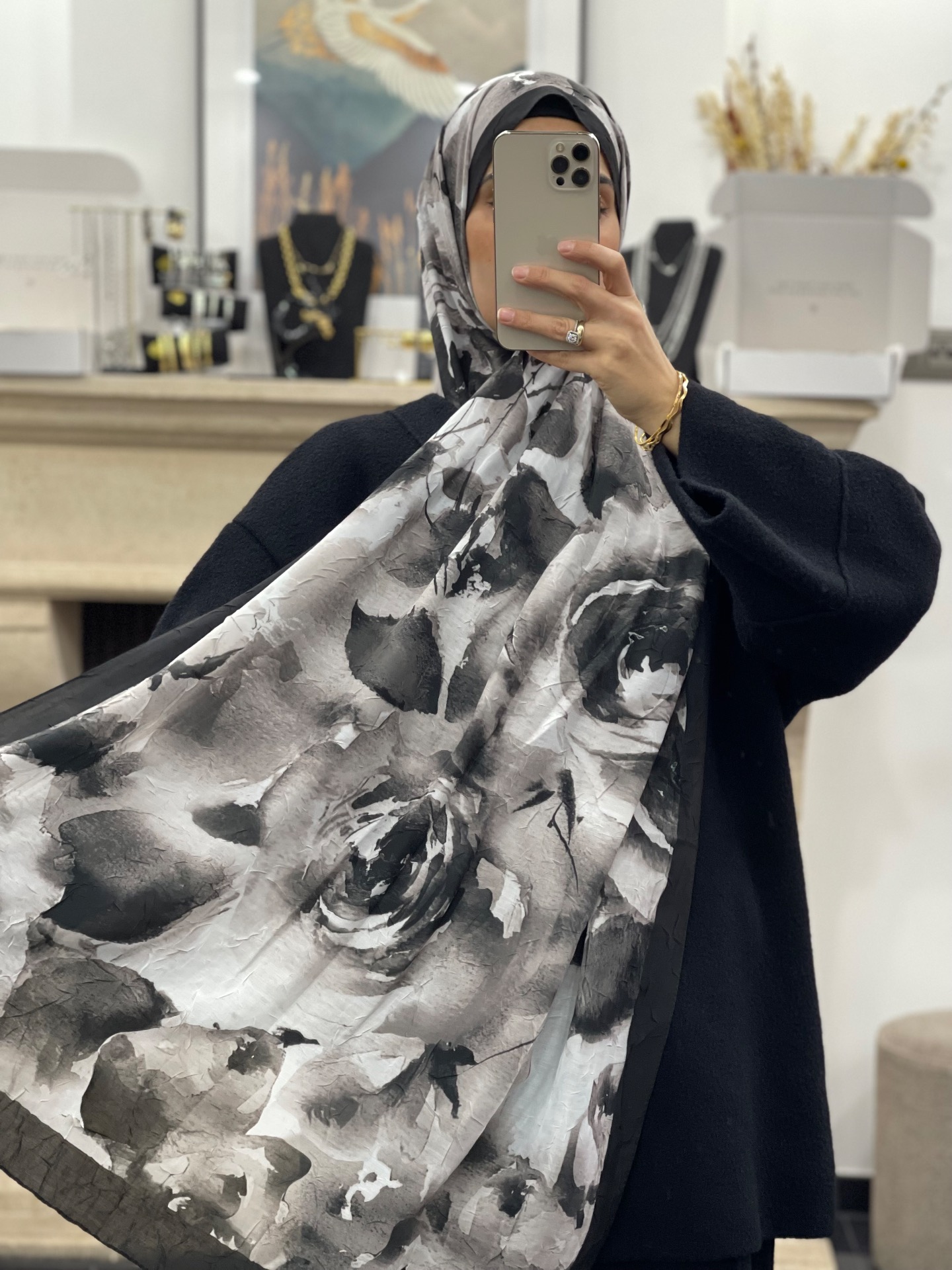 Bamboe Sjaal Hoofddoek Hijab met Rozen print Zwart-Beige