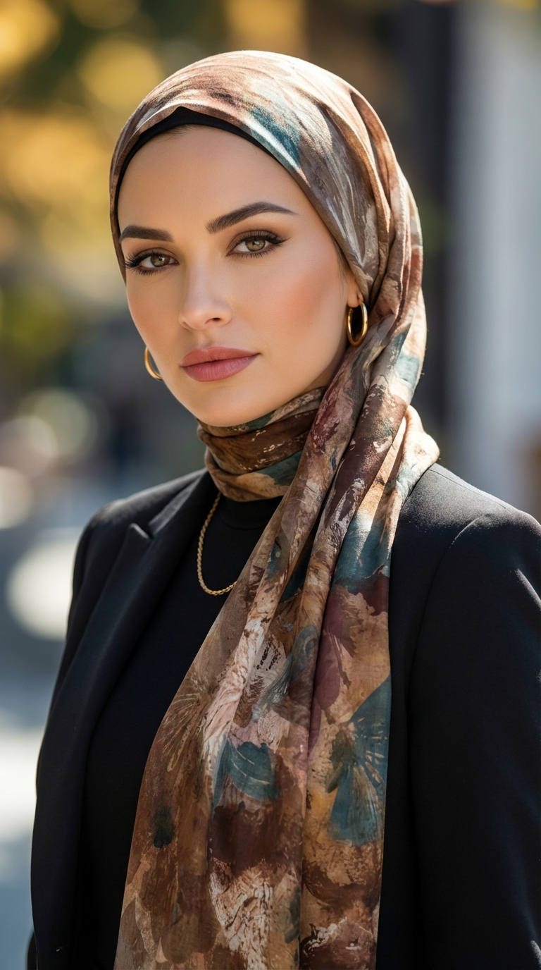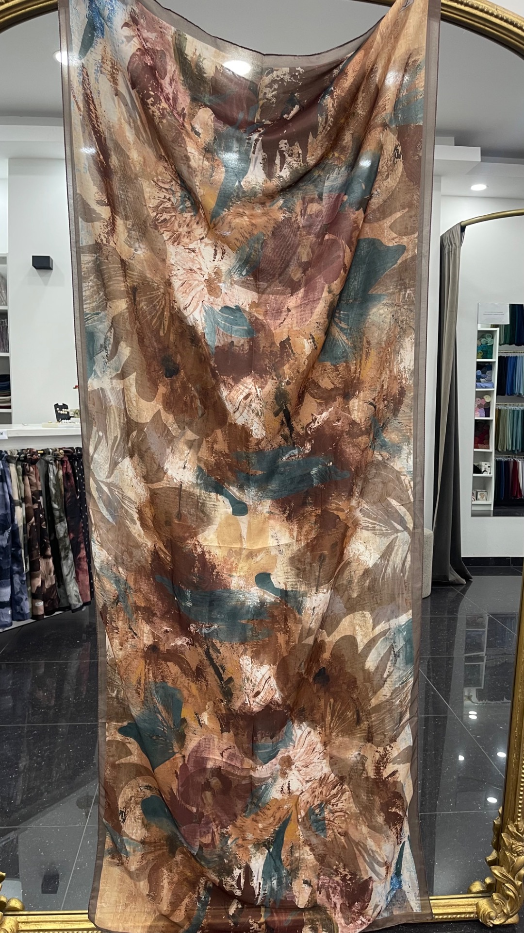 Zachte lichte sjaal met print.