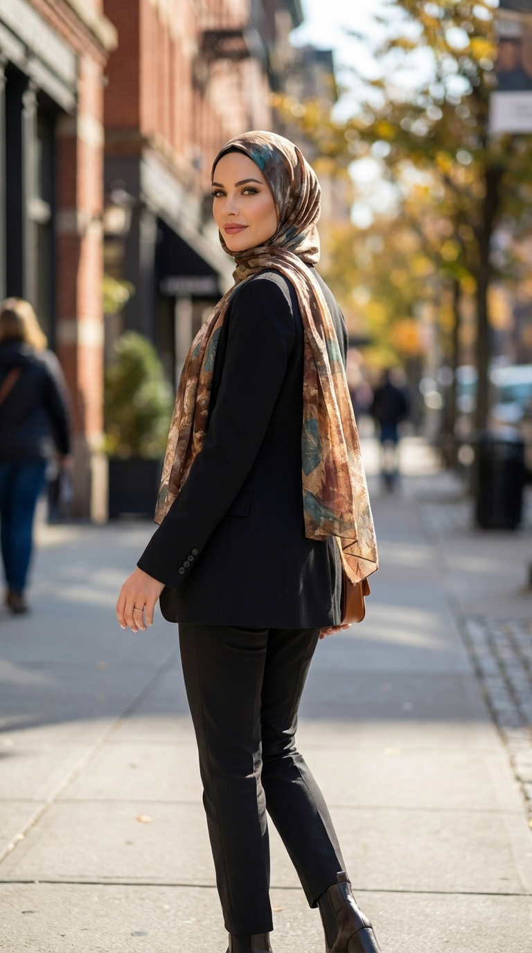 Canvas sjaal - bruin/blauw