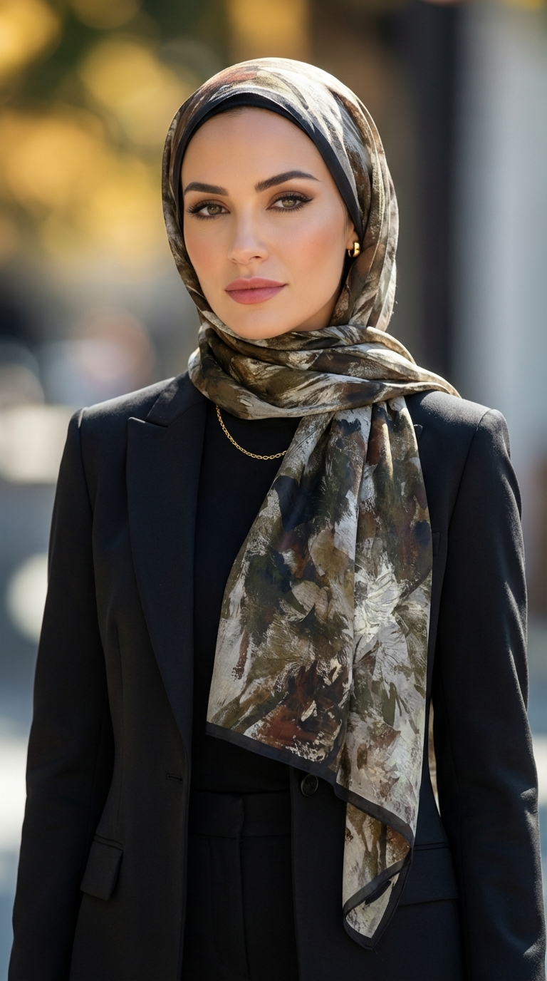 Zachte lichte sjaal met print.
