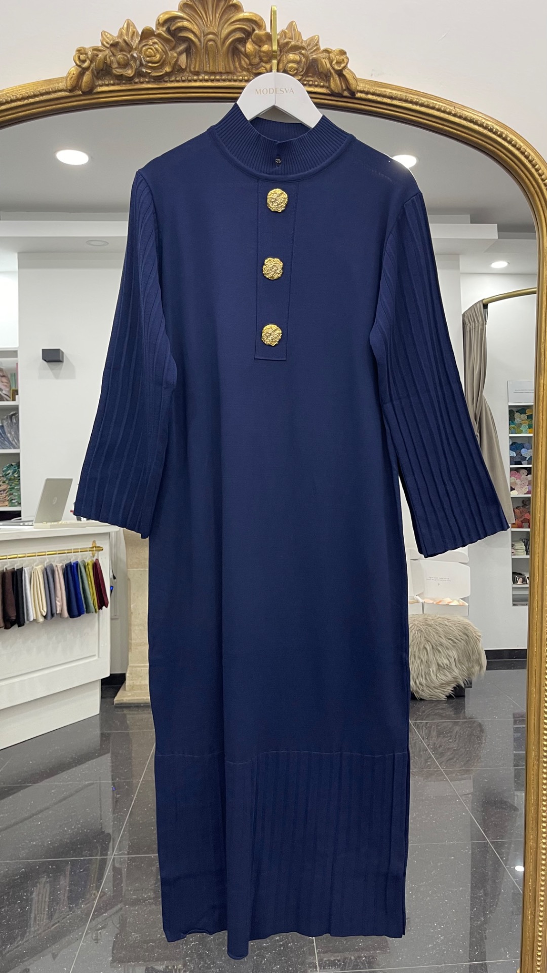 Mercerisé Tricot Jurk met statement knopen - Donkerblauw