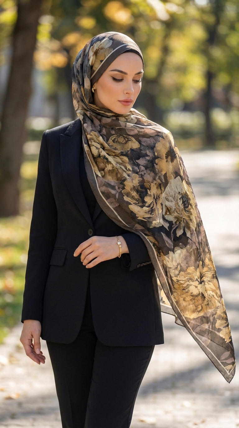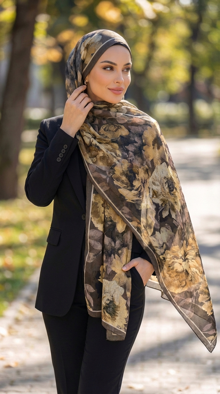 Floral sjaal - mosterd