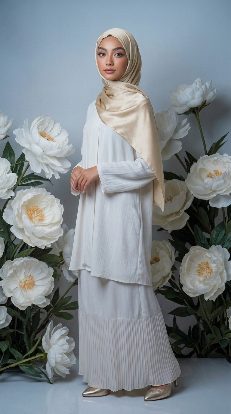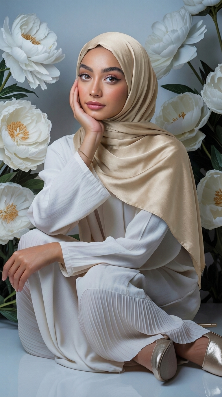 Party hijab hoofddoek met lichte glans. Dunne stof, mix tussen chiffon en satijn. Maten: 180cm x 70cm.