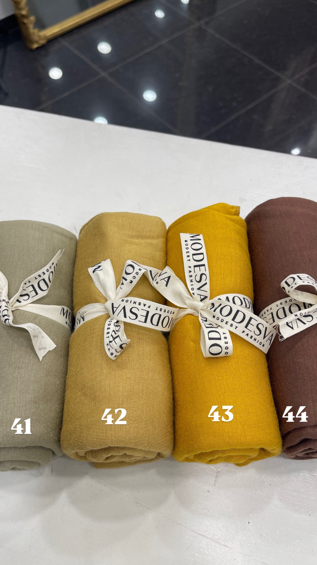 Jersey Katoen 41- Green Tea 42- Gold 43- Mosterd 44- Coffee