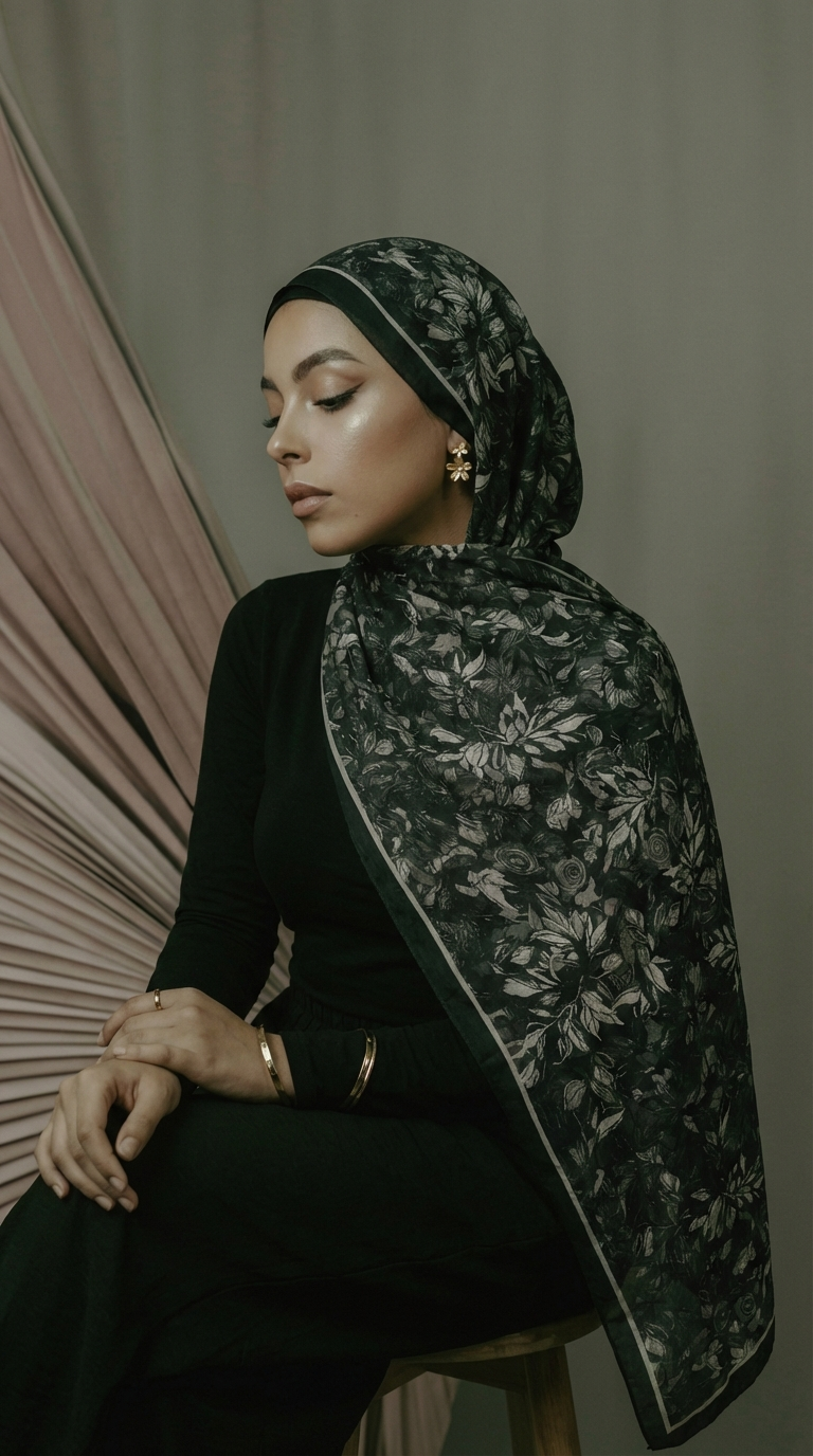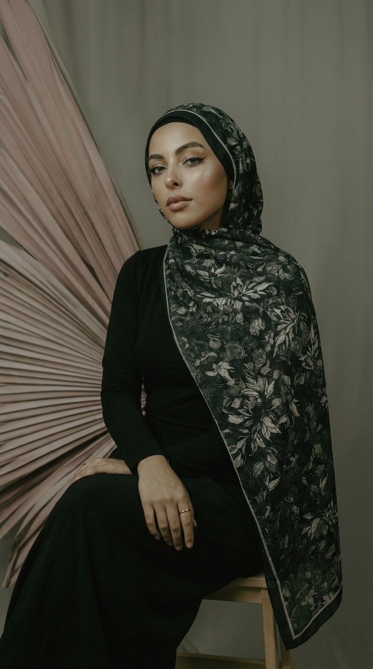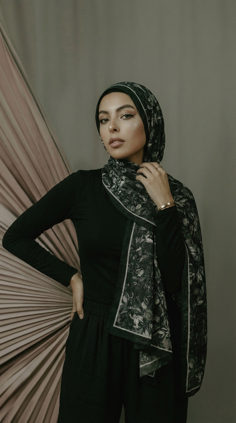 Leaves sjaal - zwart