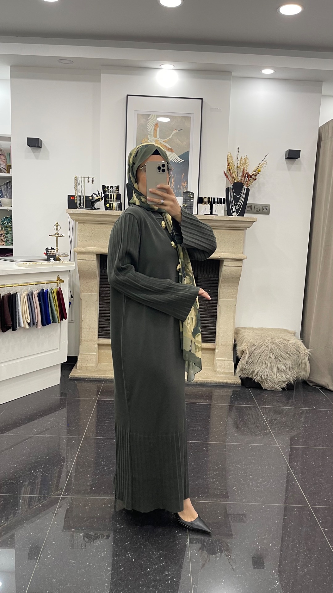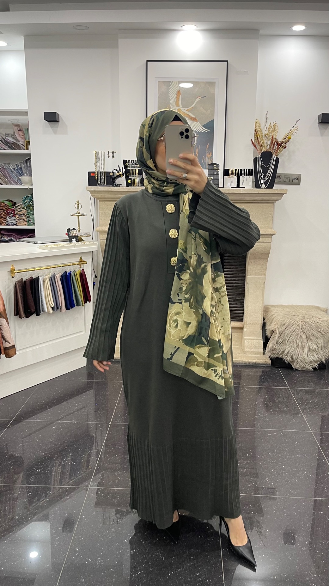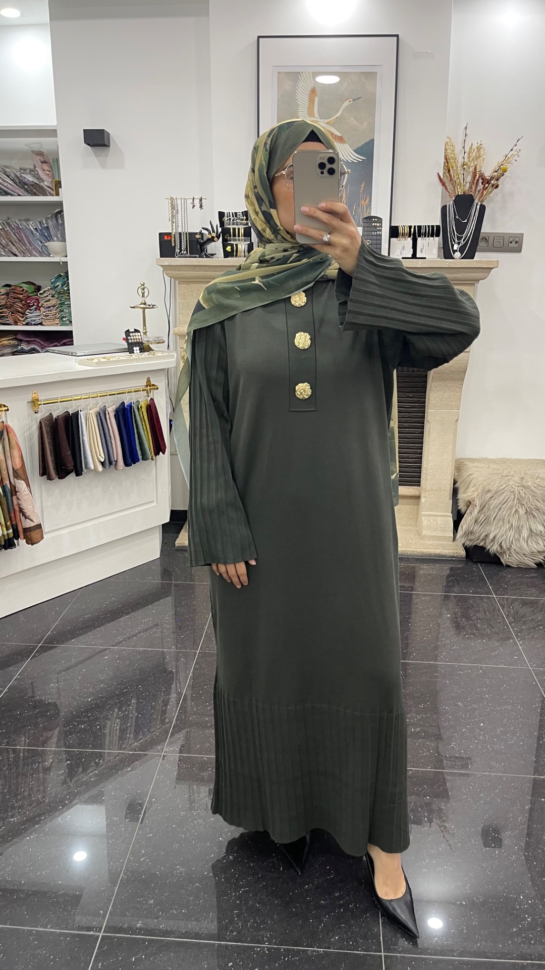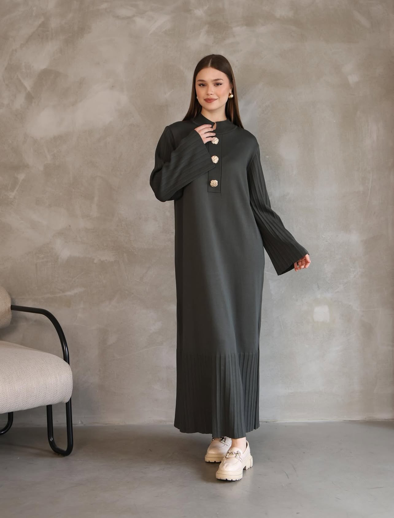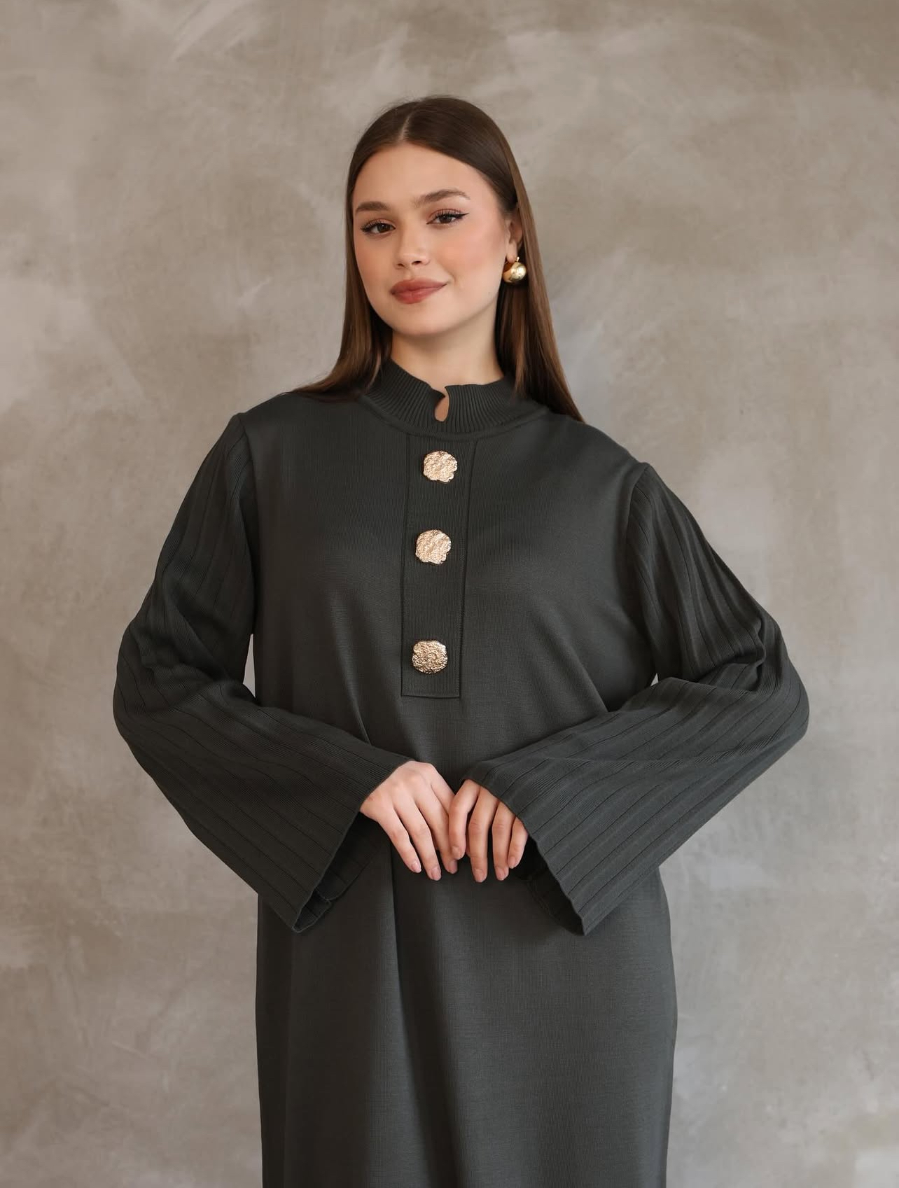 Mercerisé Tricot Jurk met statement knopen - Kaki