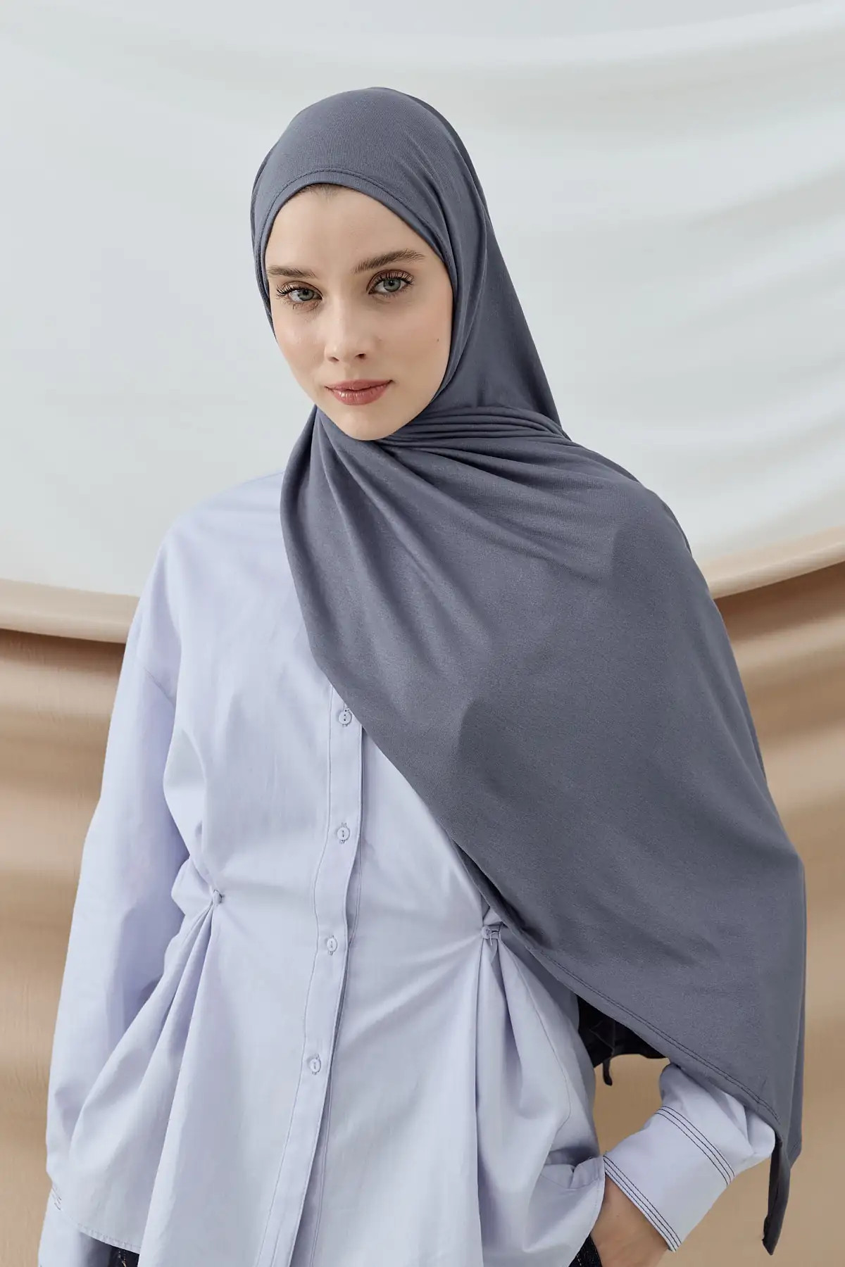 MODAKASMIR - Jersey Katoen Viscose Sjaal Hoofddoek Hijab Blauwgrijs
