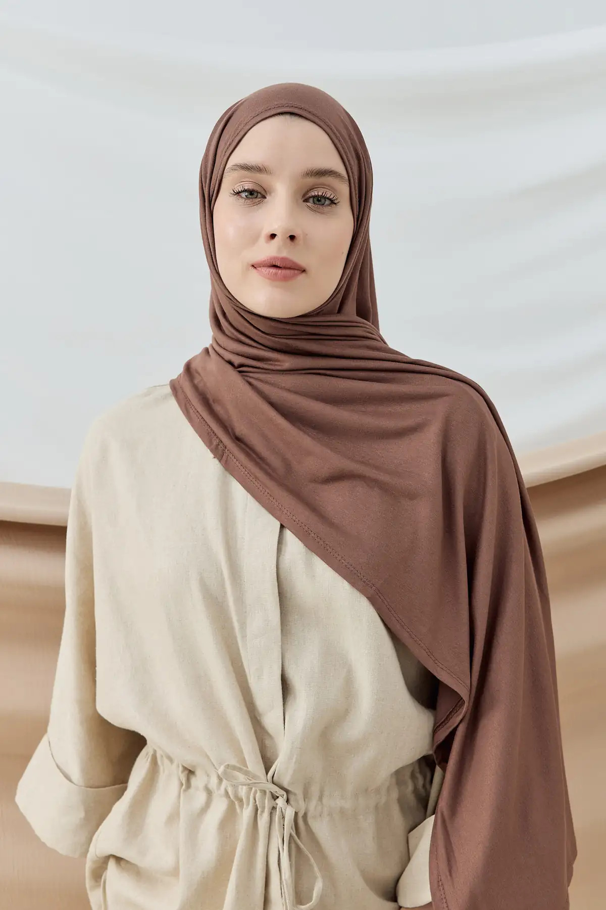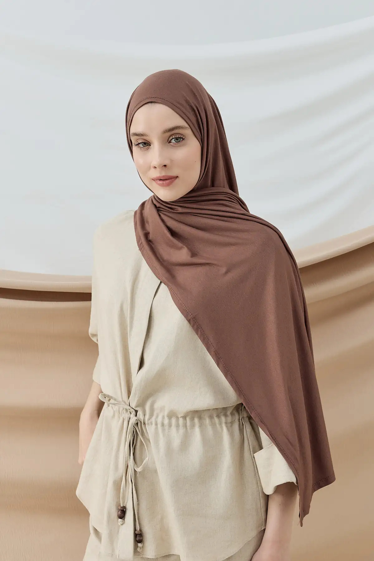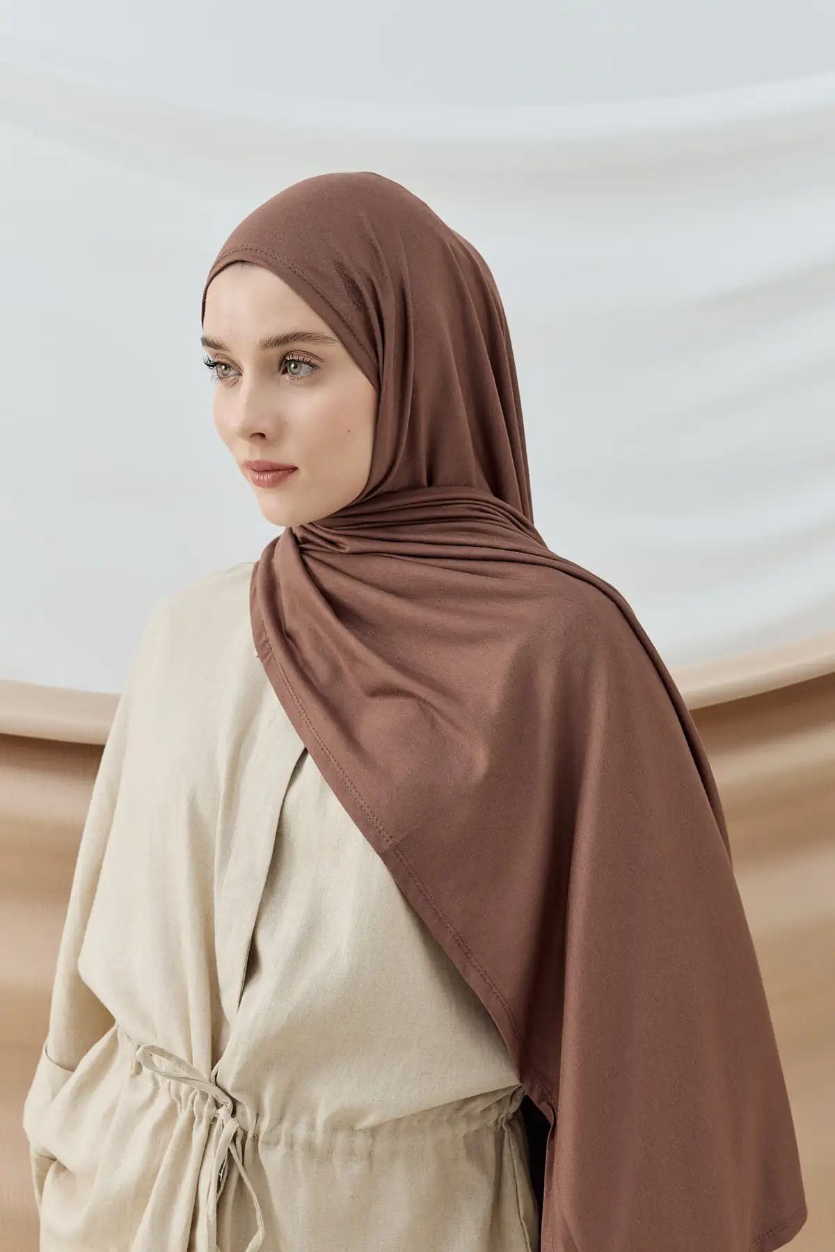 MODAKASMIR - Jersey Katoen Viscose Sjaal Hoofddoek Hijab Coffee