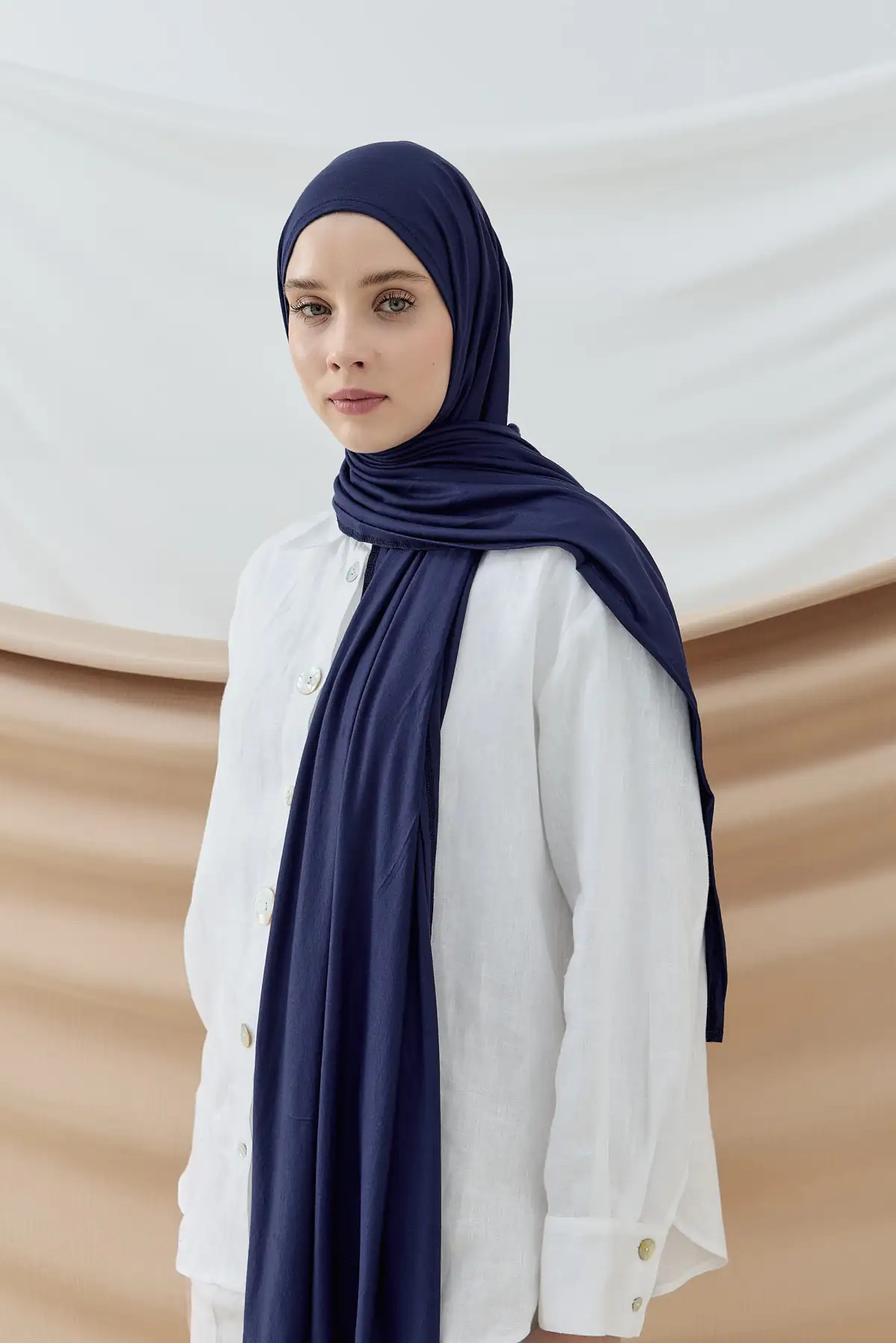 MODAKASMIR - Jersey Katoen Viscose Sjaal Hoofddoek Hijab Donkerblauw