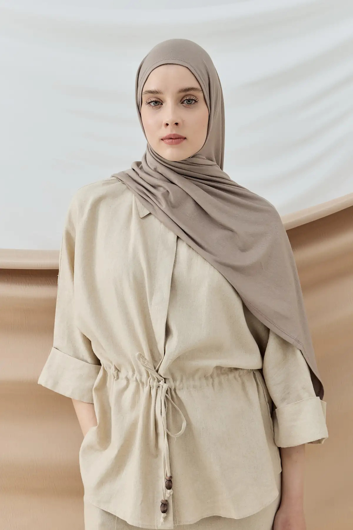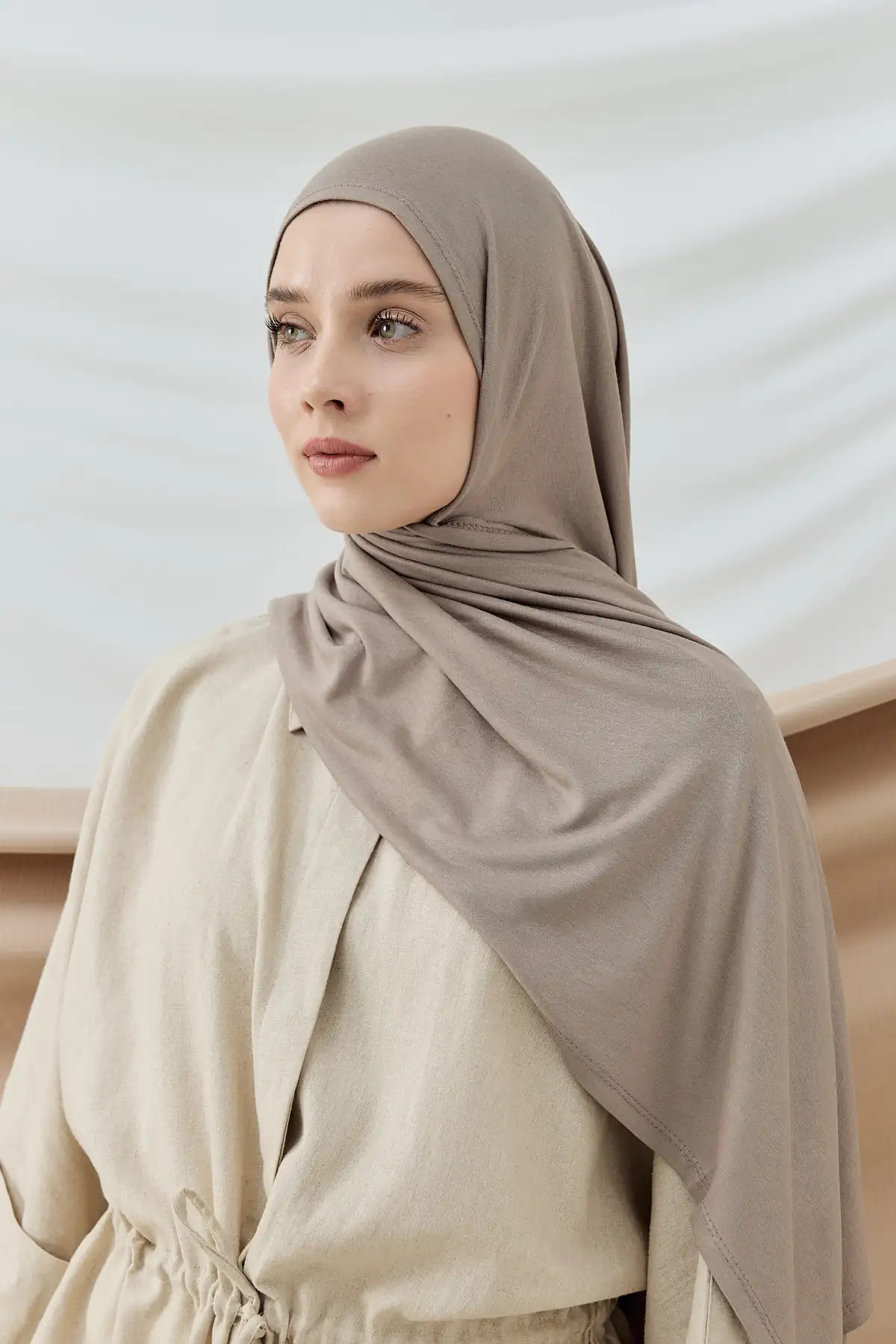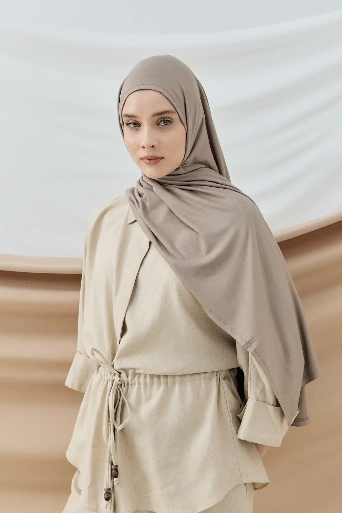 MODAKASMIR - Jersey Katoen Viscose Sjaal Hoofddoek Hijab Taupe