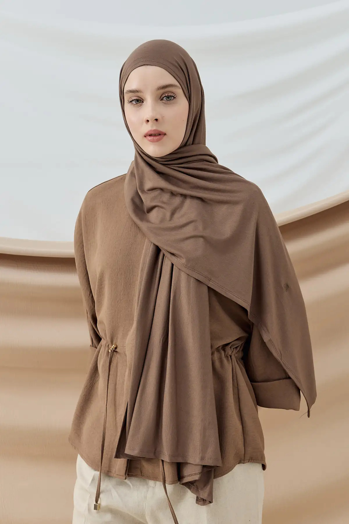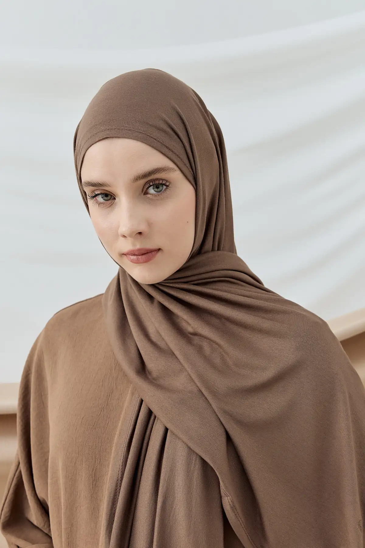 MODAKASMIR - Jersey Katoen Viscose Sjaal Hoofddoek Hijab Walnoot