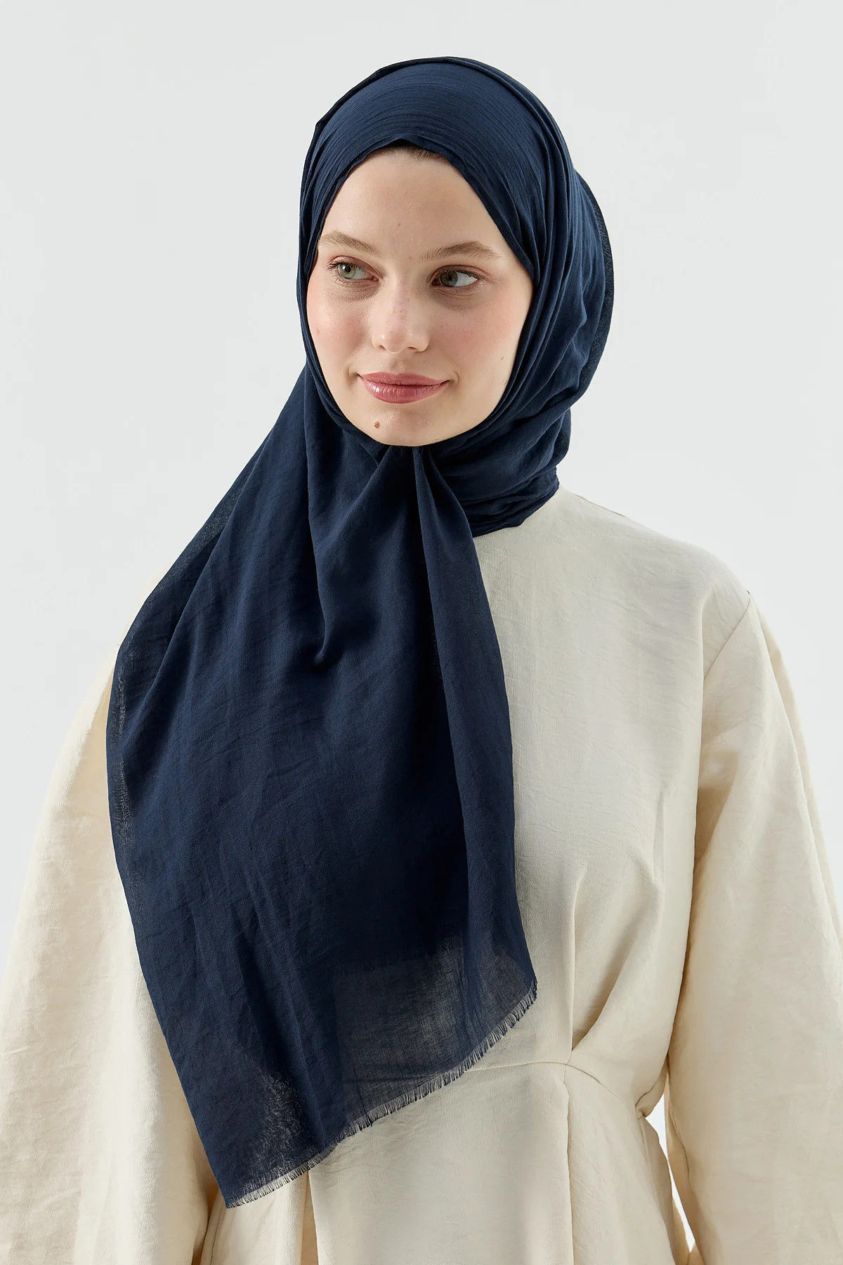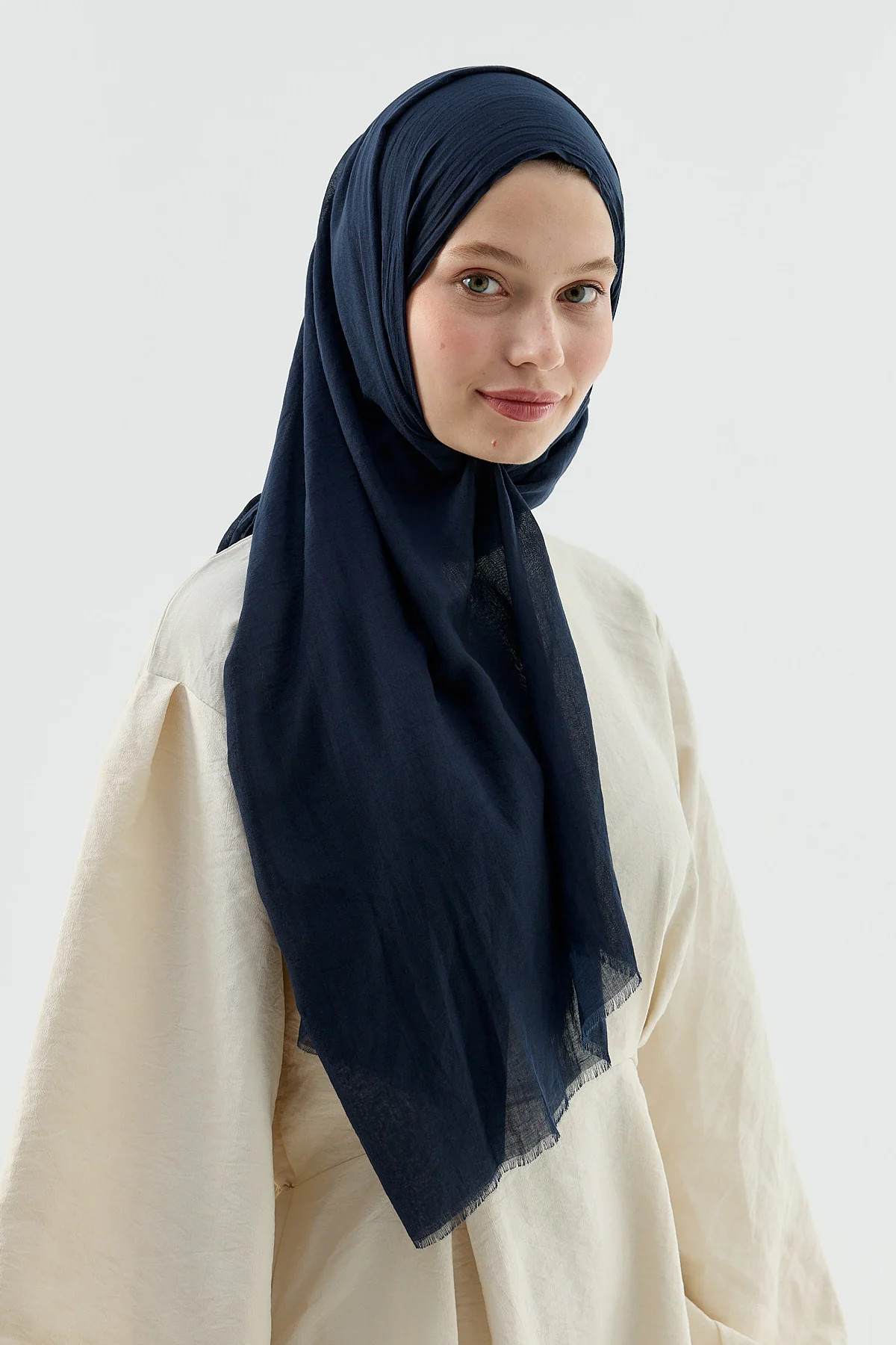 MODAKASMIR - Katoenen hoofddoek sjaal hijab Marine- 100cmx190cm- 100% katoen- super soft- lichtgewicht