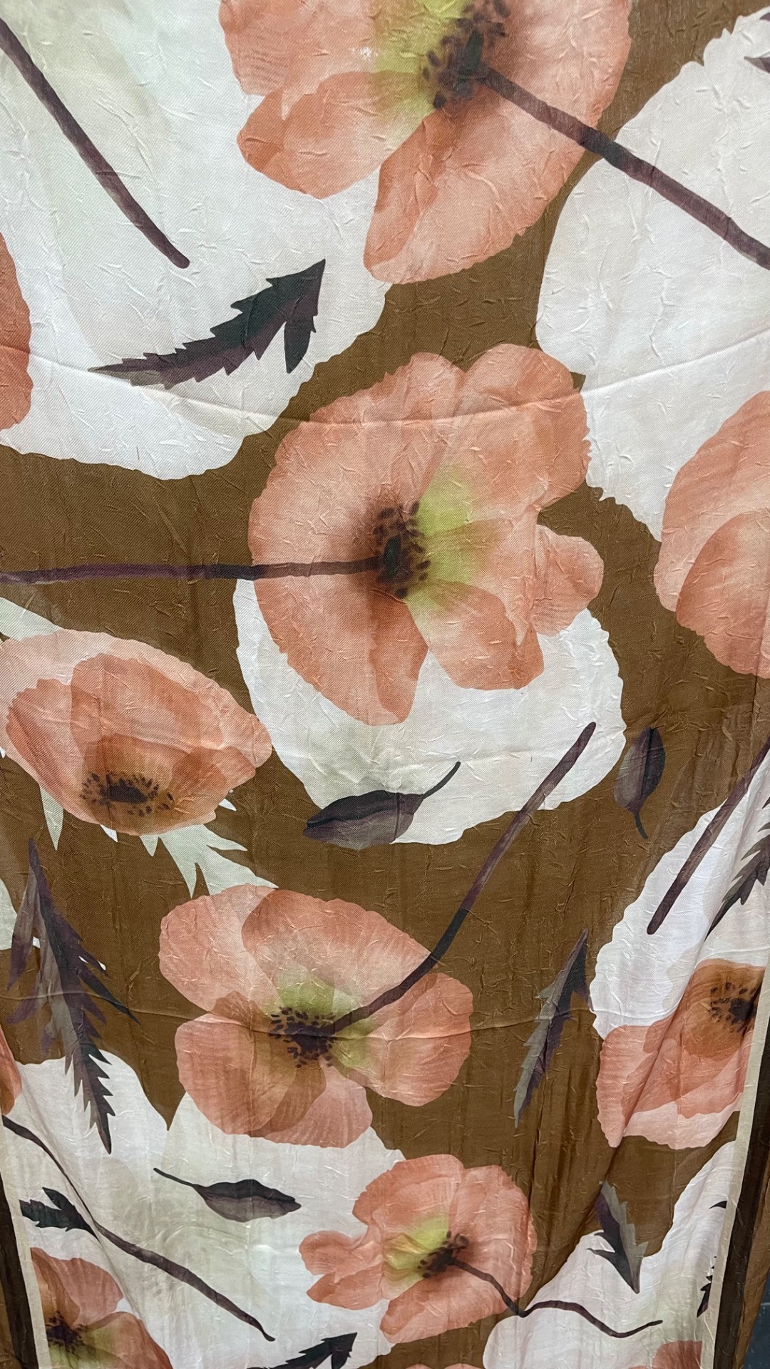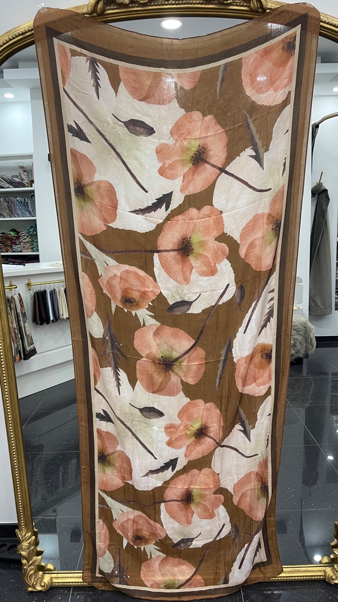 MODAKASMIR - Bamboe sjaal hoofddoek hijab met klaprozen print bruin/terracotta