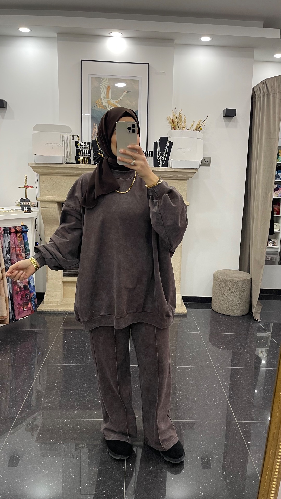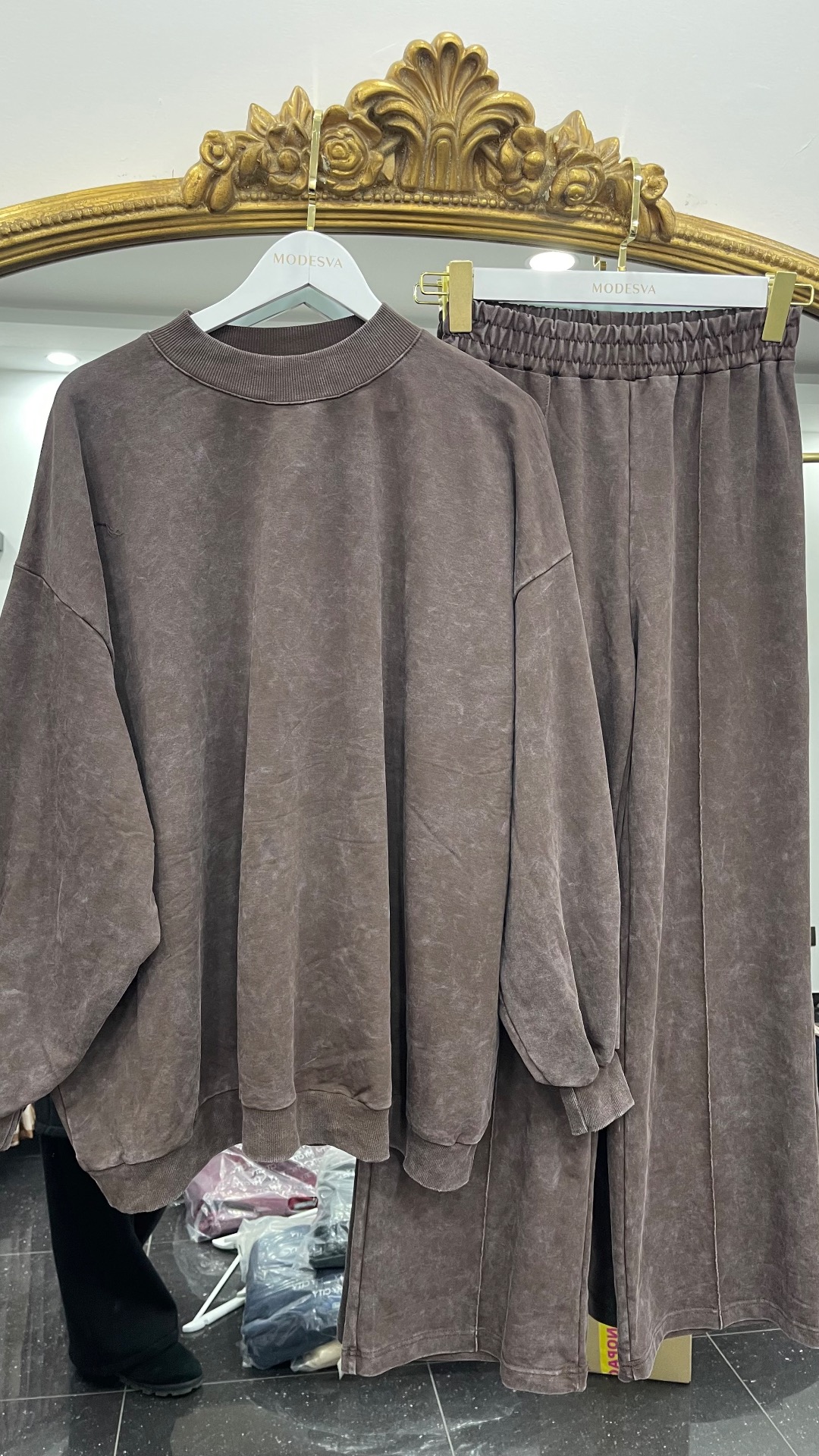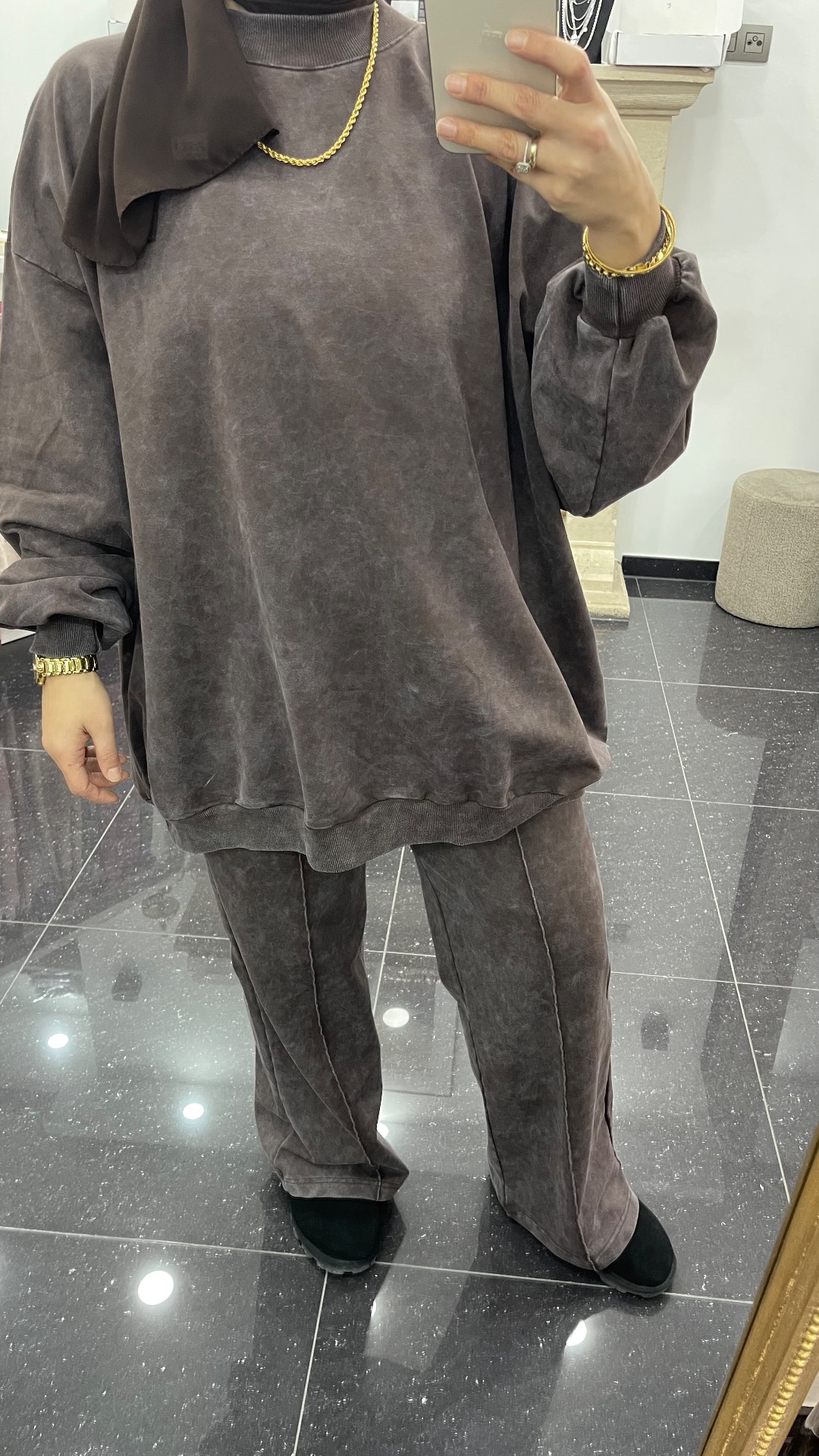 Deze coole twinset van zachte gebleekde sweater stof is een musthave voor iedere garderobe. De oversized trui en broek met verticale naden aan de voorkant heeft een afslankend effect! Zowel de stof als de taille van de broek zijn elastisch, een en al comfort dus! De dikte van de stof is ideaal voor de seizoenovergangen en niet te dun voor de winter maar ook niet te dik voor de herfst en de lente. Een kwalitatief setje waar je jarenlang plezier aan zal hebben! De maten vallen normaal, maar als je wilt dat het wat losser zit kan je best de grote maat nemen.