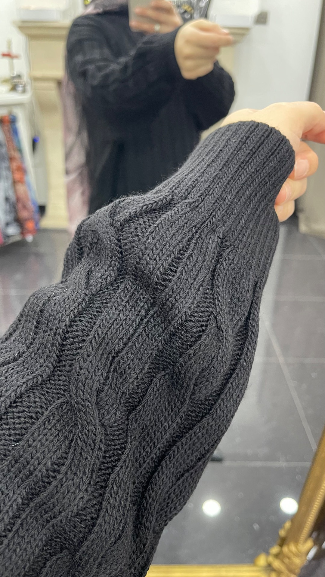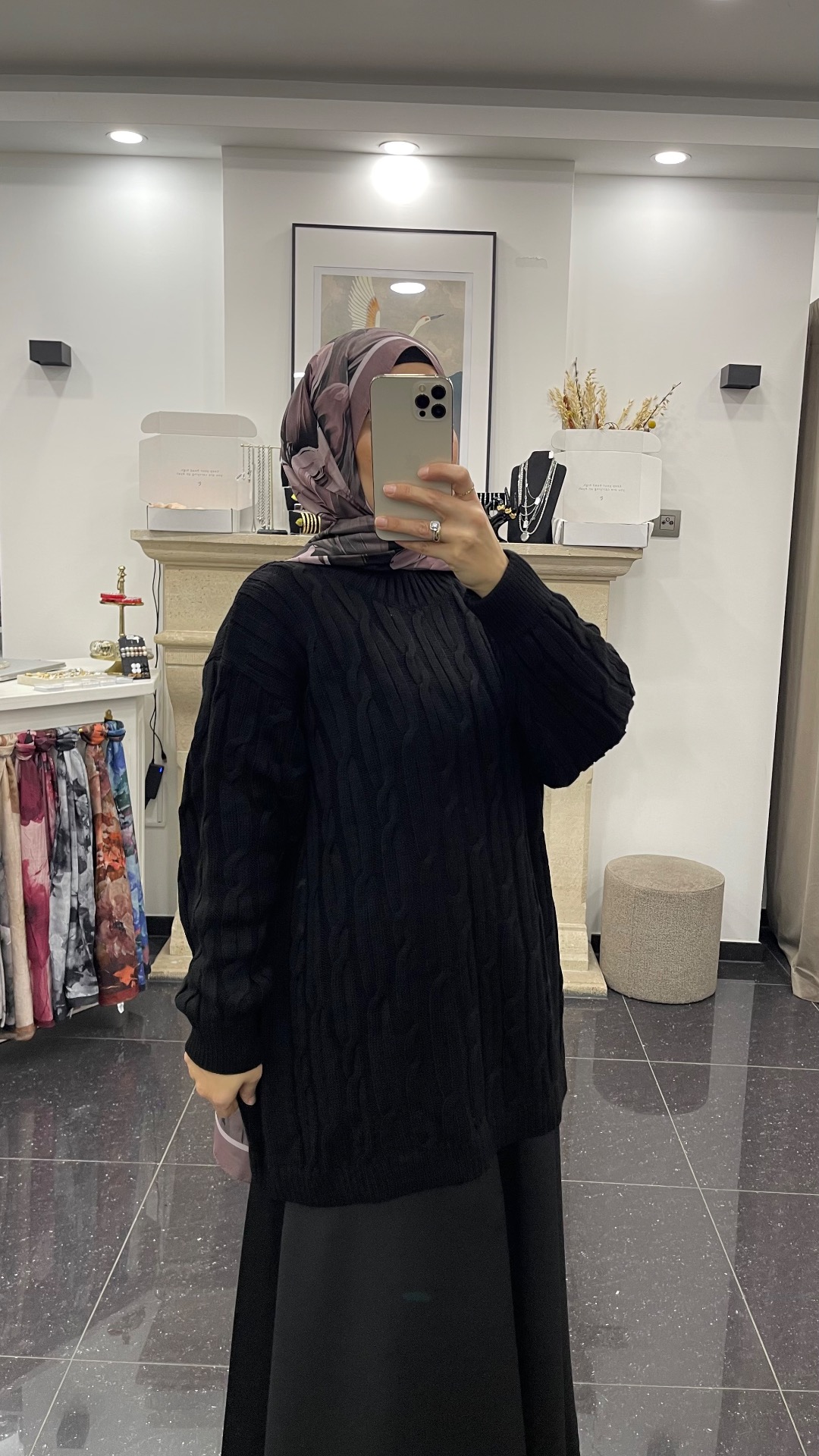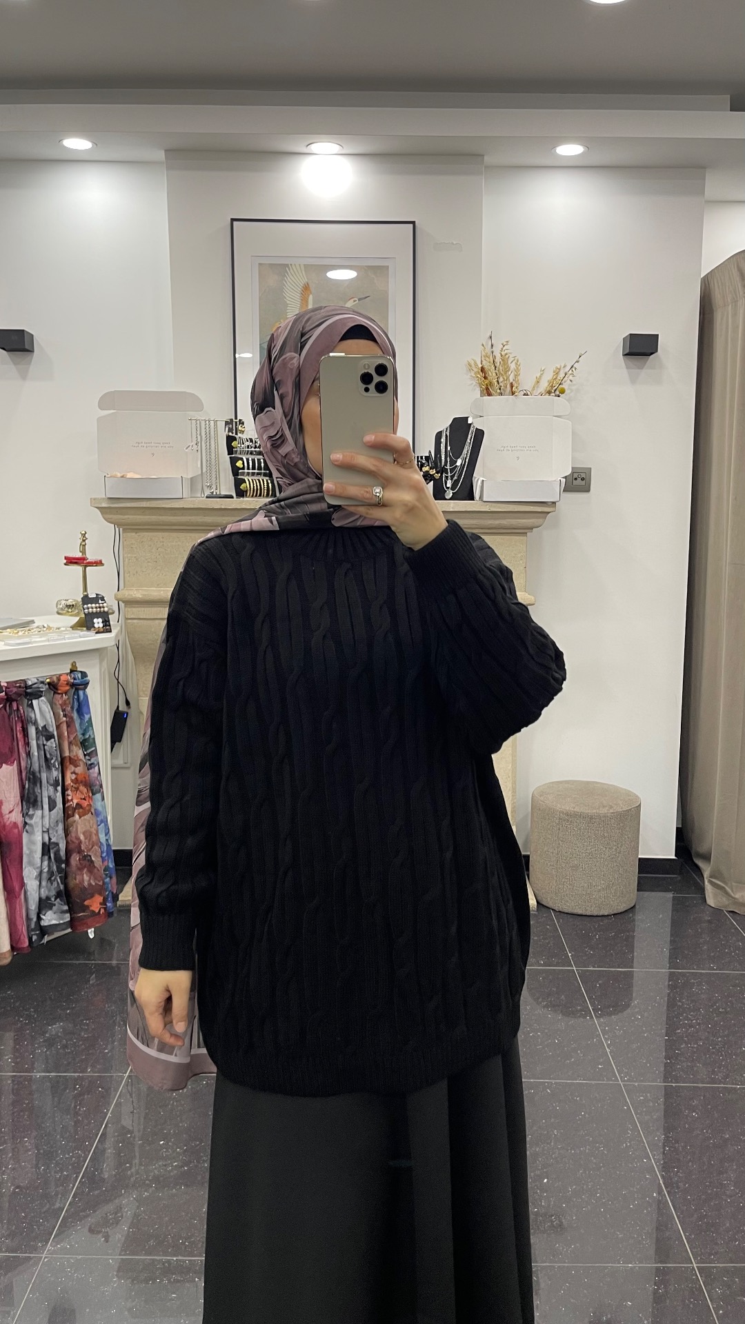 Lange warme kabeltrui. Perfect te combineren met broek of rok. One size past van 36 tot 46.