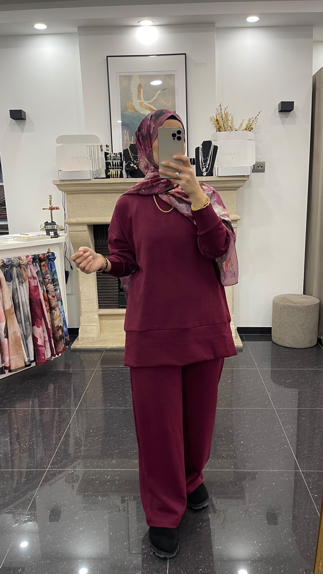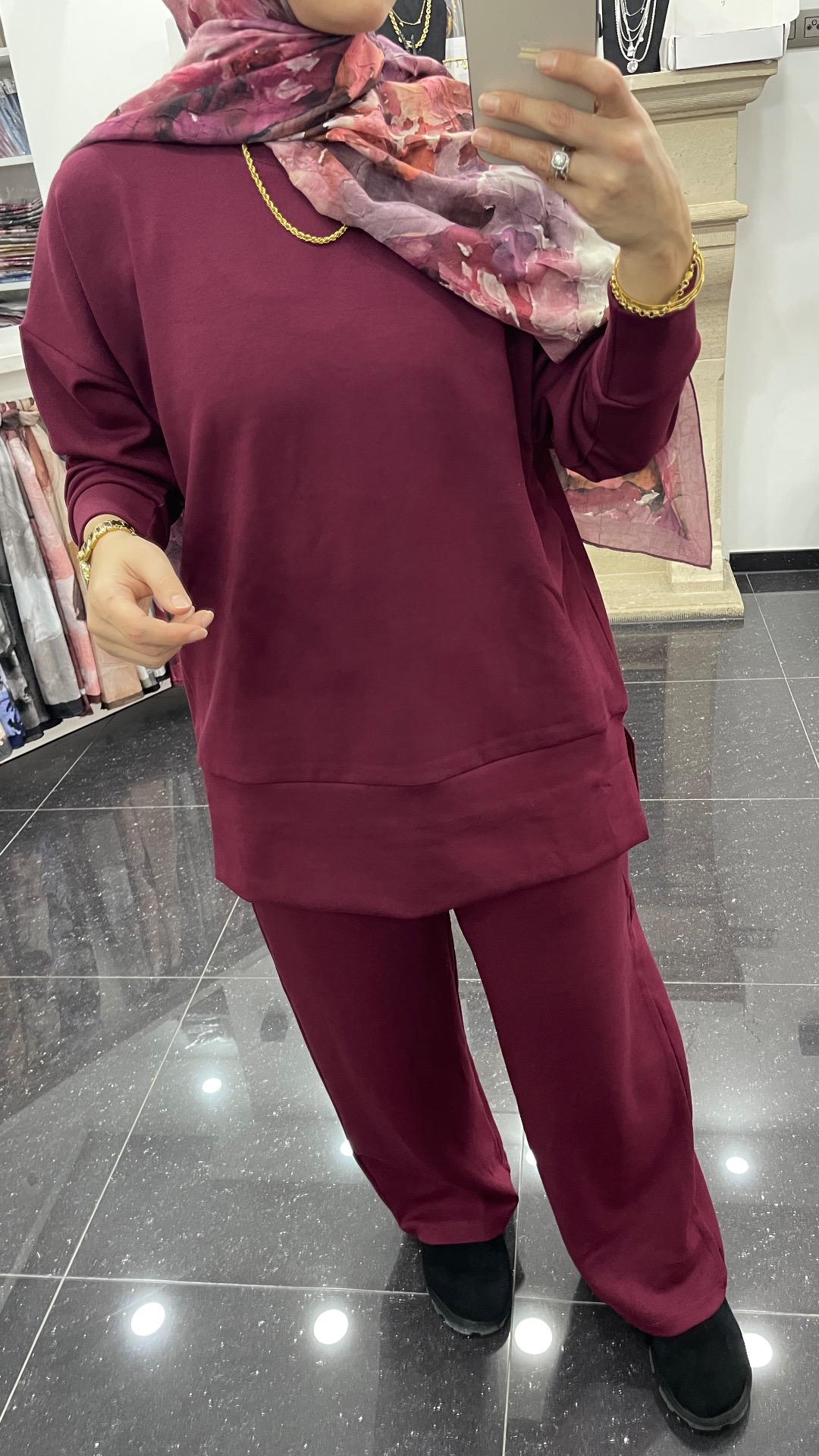 Deze prachtige twinset van zachte en luxe aanvoelende viscosemix is een musthave voor iedere garderobe. De basic trui met naad vanonder en aan de mouwen creëert een perfecte mix tussen sportief en casual. De broek heeft een elastische taille en zakken. De dikte van de stof is ideaal voor de seizoenovergangen en niet te dun voor de winter maar ook niet te dik voor de herfst en de lente. Een kwalitatief setje waar je jarenlang plezier aan zal hebben! De maten vallen normaal, maar als je wilt dat het wat losser zit kan je best de grote maat nemen.