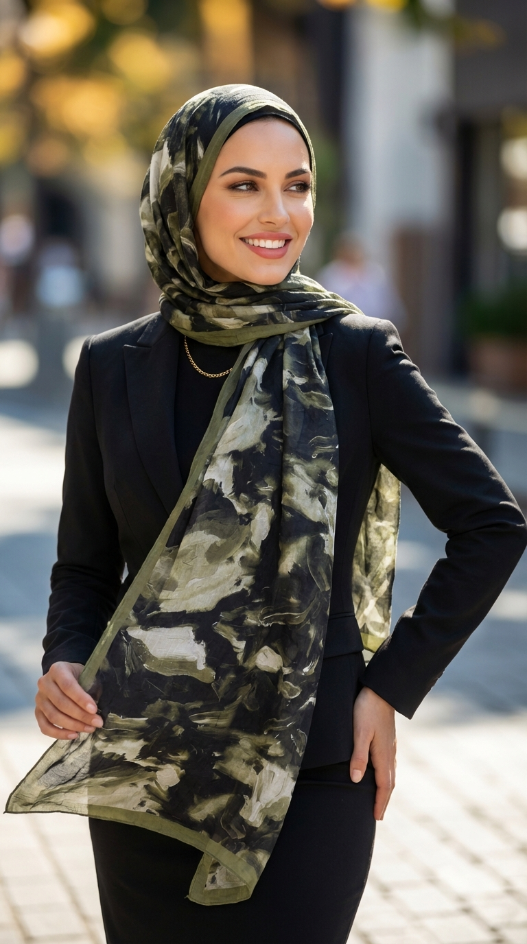 Zachte lichte bamboe sjaal met print.