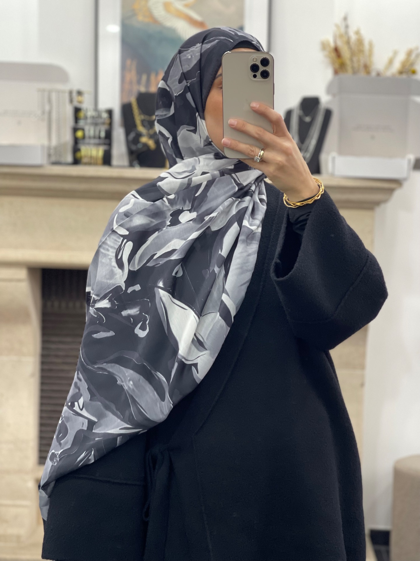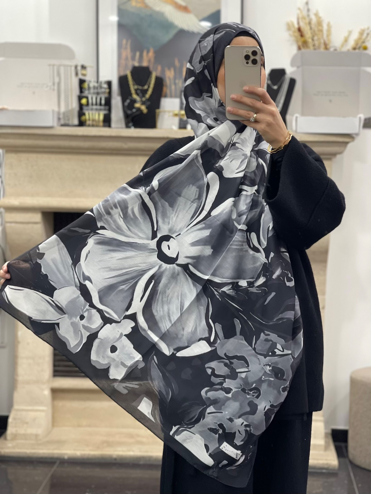 Zachte lichte sjaal met print.
