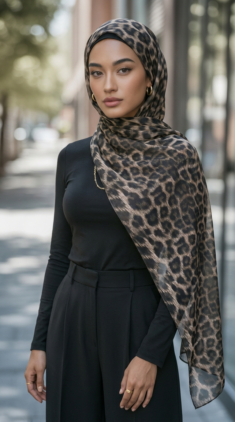 Zachte lichte sjaal met luipaard print.