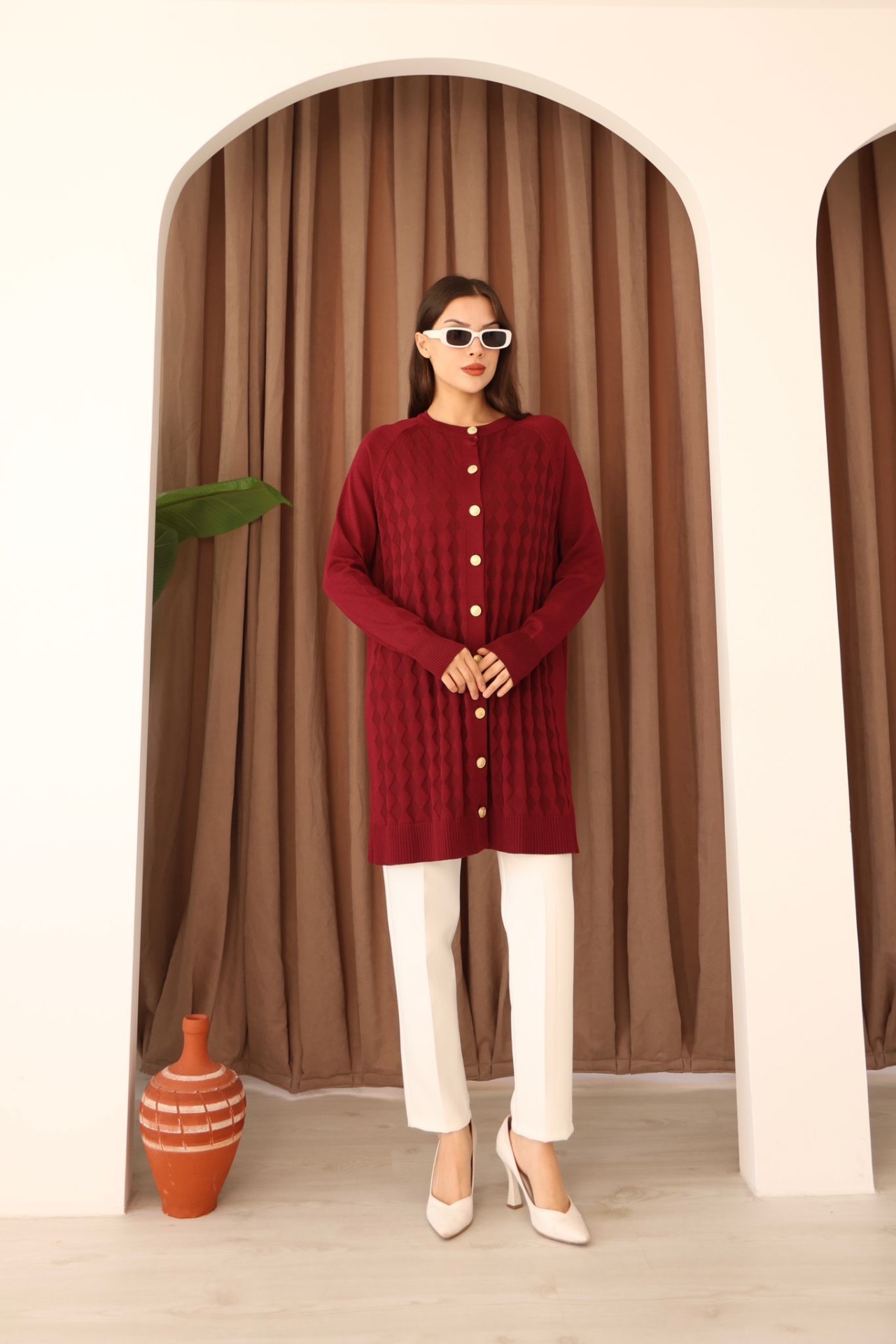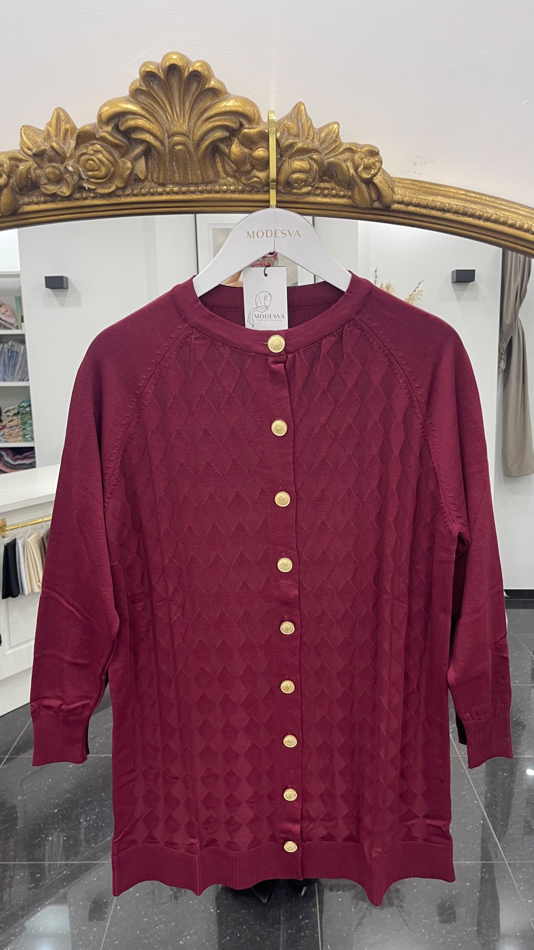 Mercerisé Tricot Vest met gold knoopjes - Bordeaux
